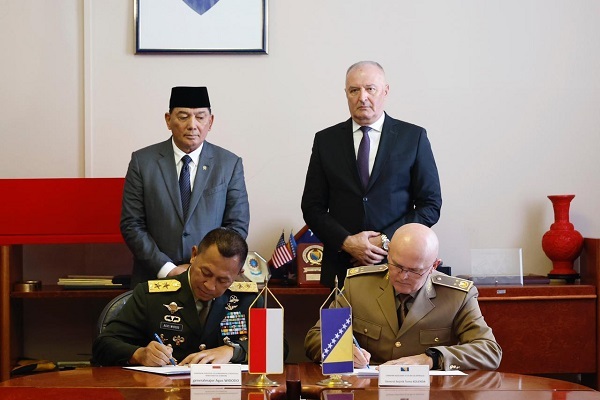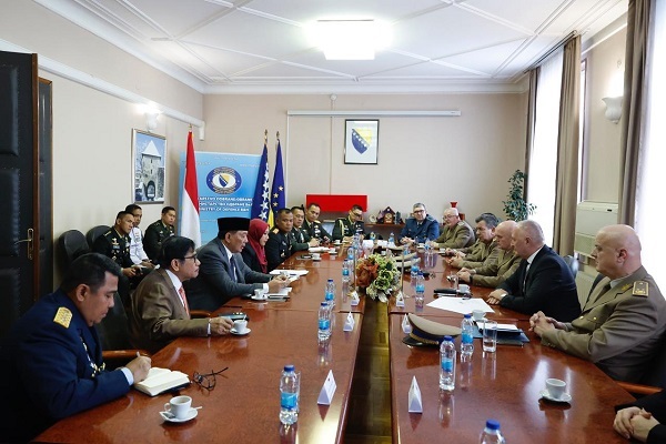 Bahas penguatan inhan hingga penempatan Athan (Dok. Kemhan)Dirjen Strahan Kemhan Mayjen TNI Agus Widodo, S.IP., M.Si., mendampingi Menhan RI pada kunjungan resmi ke Kemhan Bosnia dan Herzegovina. Menhan RI beserta delegasi di terima langsung oleh Menhan Bosnia dan Herzegovina H.E. Zukan Helez, di Kementerian Pertahanan Bosnia dan Herzegovina, Sarajevo, Minggu (11/1/2026).